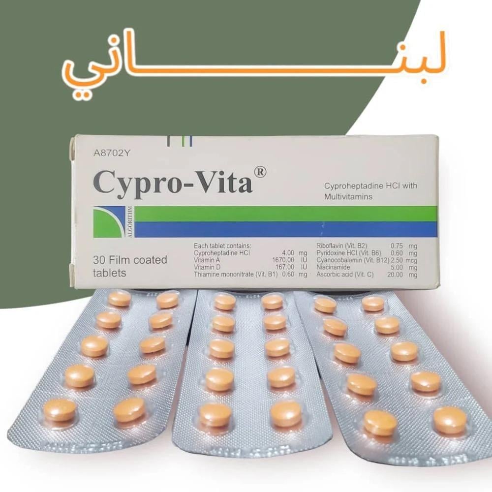هو مجموعة من الفيتامينات ومادة سيبروهيبتادين هيدروكلورايد ، والتي من اعراضها الجانبية زيدة الوزن وفتح الشهية لذا يمكنك استخدامه، ولكئن ابدأي بحبة واحدة لعدة أيام ومن ثم يمكن أن تزيدي الجرعة بعد ذلك إلى حبتين, فإن تحسنت الشهية يمكن أن تستمري على حبيتين, ويمكن أن تزيدي إلى ثلاث حبات إن لزم الأمر.
